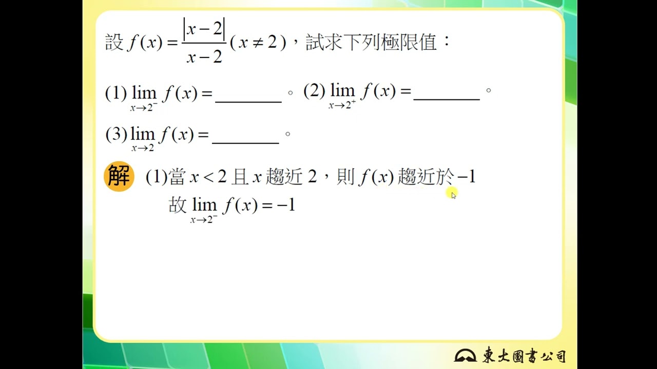載入中... 相關課程 Back 【解題】左右極限與極限值2 相關課程 0 / 750 登入觀看 ⇐ Use this menu to view and help create subtitles for this video in many different languages. You'll probably want to hide YouTube's captions if using these subtitles. 【解題】左右極限與極限值2 上傳學習單 下載學習單