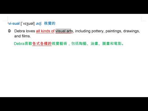 載入中... 相關課程 Back visual [`vɪʒuəl] adj. 視覺的 相關課程 0 / 750 登入觀看 ⇐ Use this menu to view and help create subtitles for this video in many different languages. You'll probably want to hide YouTube's captions if using these subtitles. visual [`vɪʒuəl] adj. 視覺的 上傳學習單 下載學習單