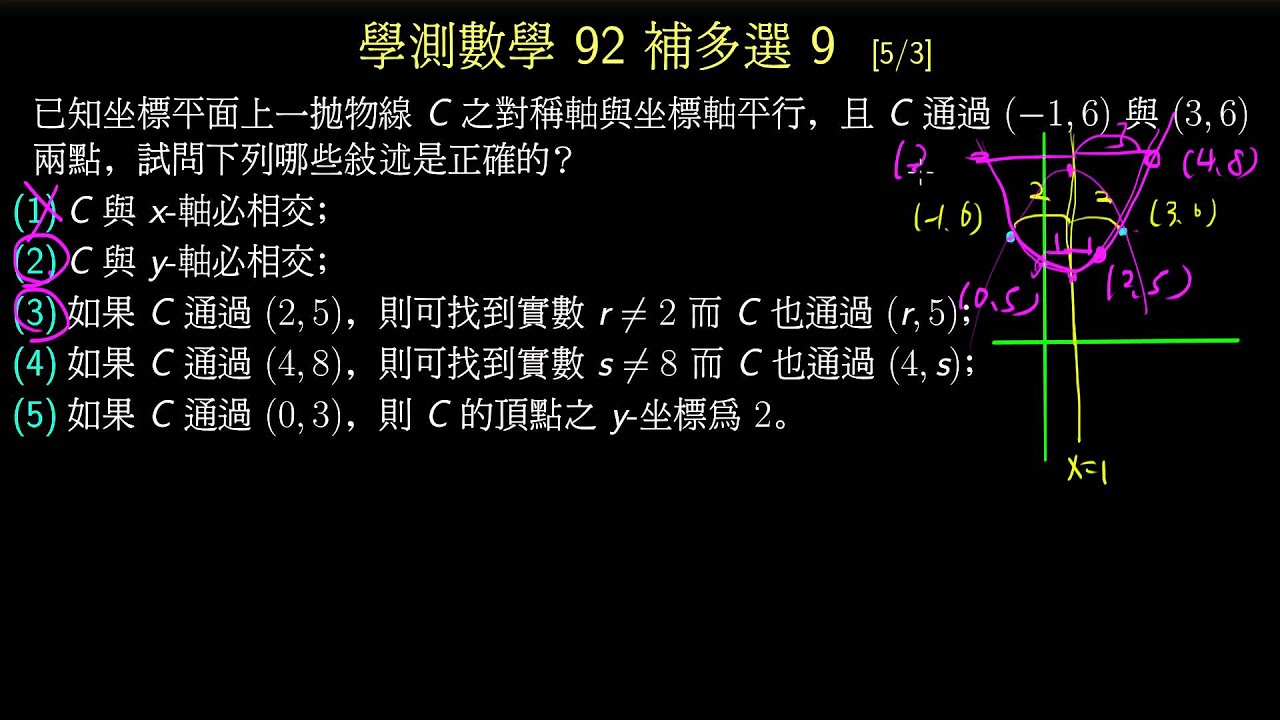 載入中... 相關課程 Back 【學測】092補 多選9 拋物線過兩個 y 坐標相同的點 相關課程 0 / 750 登入觀看 ⇐ Use this menu to view and help create subtitles for this video in many different languages. You'll probably want to hide YouTube's captions if using these subtitles. 【學測】092補 多選9 拋物線過兩個 y 坐標相同的點 上傳學習單 下載學習單