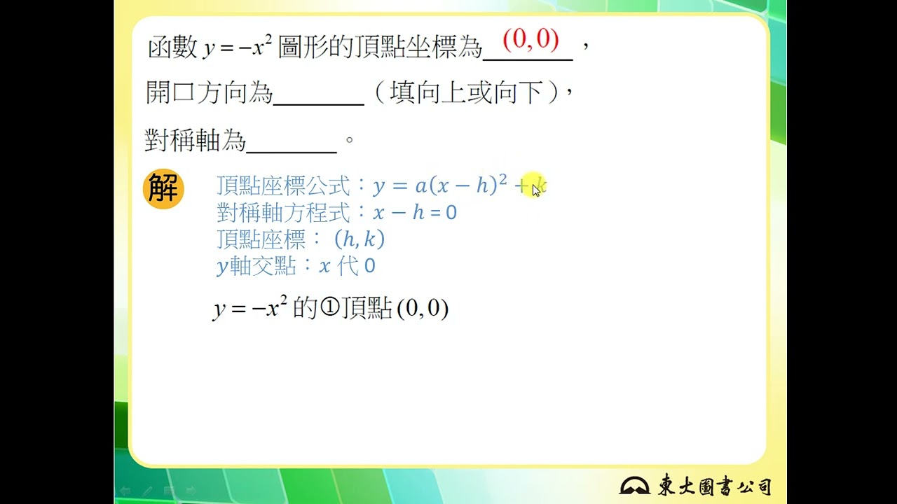 載入中... 相關課程 Back 【解題】求二次函數圖形的頂點及其對稱軸 相關課程 0 / 750 登入觀看 ⇐ Use this menu to view and help create subtitles for this video in many different languages. You'll probably want to hide YouTube's captions if using these subtitles. 【解題】求二次函數圖形的頂點及其對稱軸 上傳學習單 下載學習單