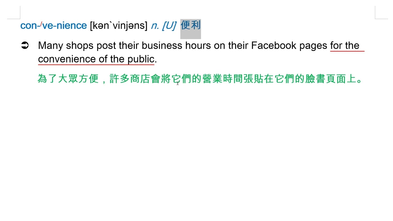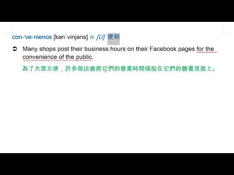 載入中... 相關課程 Back convenience [kən`vinjəns] n. [U] 便利 相關課程 0 / 750 登入觀看 ⇐ Use this menu to view and help create subtitles for this video in many different languages. You'll probably want to hide YouTube's captions if using these subtitles. convenience [kən`vinjəns] n. [U] 便利 上傳學習單 下載學習單