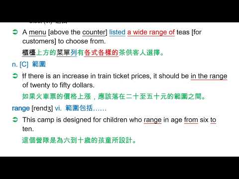 載入中... 相關課程 Back range [rendʒ] n. [C] 種類;系列 相關課程 0 / 750 登入觀看 ⇐ Use this menu to view and help create subtitles for this video in many different languages. You'll probably want to hide YouTube's captions if using these subtitles. range [rendʒ] n. [C] 種類;系列 上傳學習單 下載學習單
