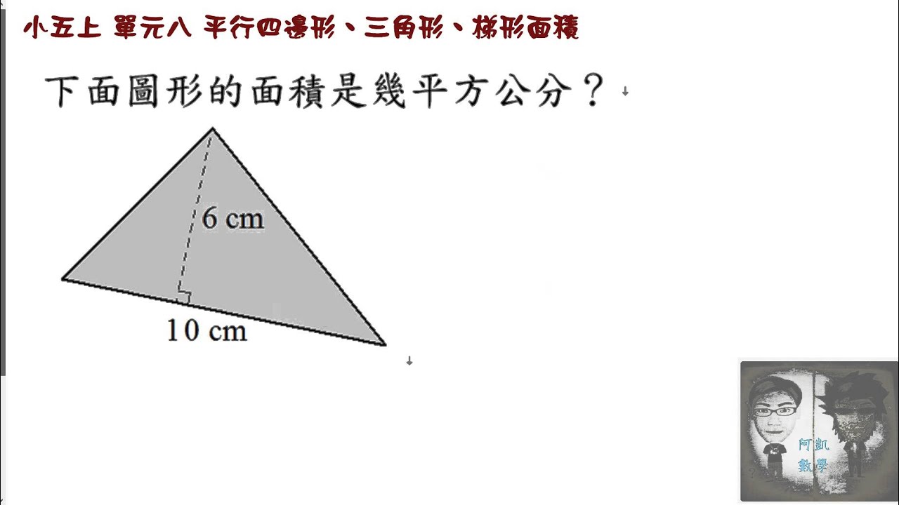 載入中... 相關課程 Back 小五上 單元八面積 影片3 三角形面積 凱爺數學 相關課程 0 / 750 登入觀看 ⇐ Use this menu to view and help create subtitles for this video in many different languages. You'll probably want to hide YouTube's captions if using these subtitles. 小五上 單元八面積 影片3 三角形面積 凱爺數學 上傳學習單 下載學習單