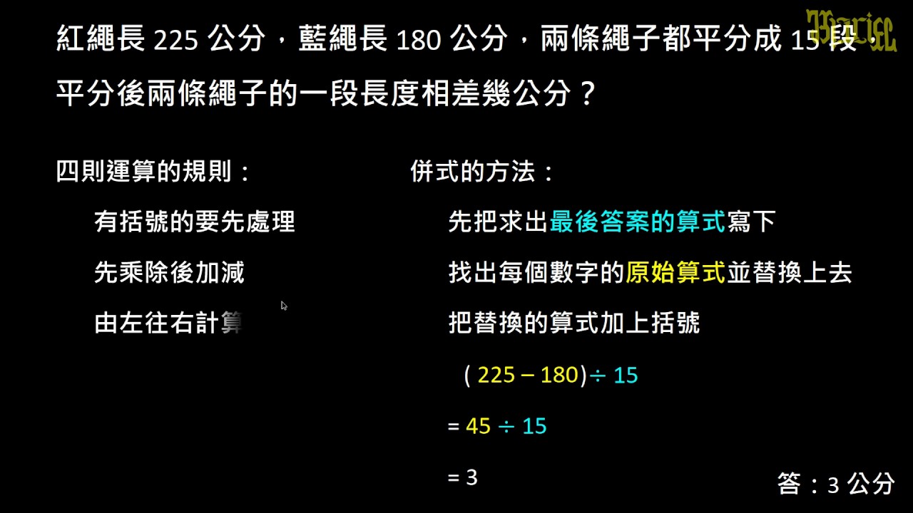 載入中... 相關課程 Back 【例題】有括號的除、減併式 相關課程 0 / 750 登入觀看 ⇐ Use this menu to view and help create subtitles for this video in many different languages. You'll probably want to hide YouTube's captions if using these subtitles. 【例題】有括號的除、減併式 上傳學習單 下載學習單