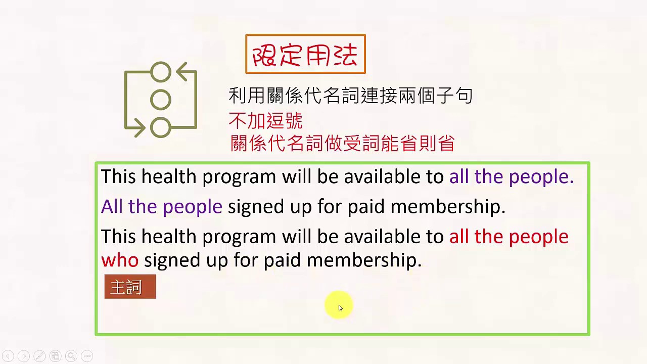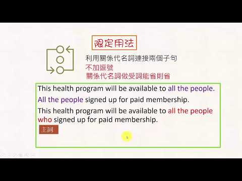 載入中... 相關課程 Back [英文句型介紹] 再談形容詞子句 1 adjective clause revisited 1 相關課程 0 / 750 登入觀看 ⇐ Use this menu to view and help create subtitles for this video in many different languages. You'll probably want to hide YouTube's captions if using these subtitles. [英文句型介紹] 再談形容詞子句 1 adjective clause revisited 1 上傳學習單 下載學習單