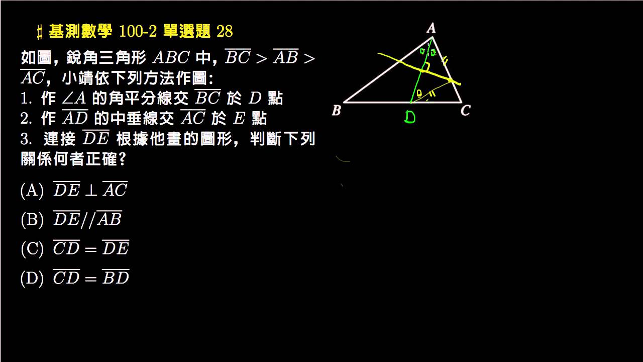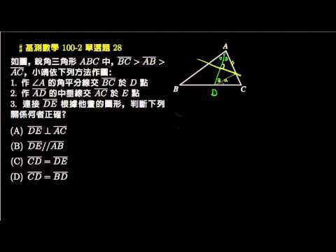 載入中... 相關課程 Back 【基測數學】100v2 單選28:中垂線、角平分線 相關課程 0 / 750 登入觀看 ⇐ Use this menu to view and help create subtitles for this video in many different languages. You'll probably want to hide YouTube's captions if using these subtitles. 【基測數學】100v2 單選28:中垂線、角平分線 上傳學習單 下載學習單