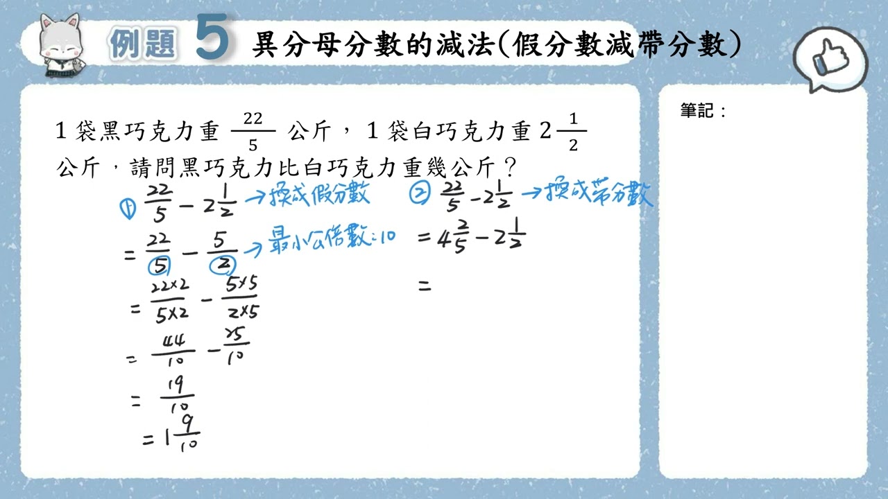 載入中... 相關課程 Back 五上 單元6 11 例題5 異分母分數的減法(假分數減帶分數) 相關課程 0 / 750 登入觀看 ⇐ Use this menu to view and help create subtitles for this video in many different languages. You'll probably want to hide YouTube's captions if using these subtitles. 五上 單元6 11 例題5 異分母分數的減法(假分數減帶分數) 上傳學習單 下載學習單