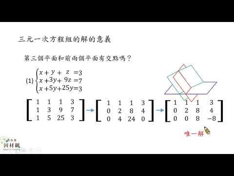 載入中... 相關課程 Back A-11A-2-S11_能將三元一次聯立方程式寫成矩陣運算式並用電腦求解 相關課程 0 / 750 登入觀看 ⇐ Use this menu to view and help create subtitles for this video in many different languages. You'll probably want to hide YouTube's captions if using these subtitles. A-11A-2-S11_能將三元一次聯立方程式寫成矩陣運算式並用電腦求解 上傳學習單 下載學習單