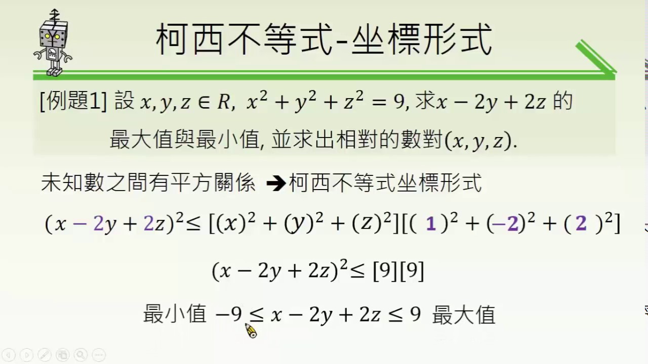 載入中... 相關課程 Back 【例題】三維柯西不等式 (1/2) 相關課程 0 / 750 登入觀看 ⇐ Use this menu to view and help create subtitles for this video in many different languages. You'll probably want to hide YouTube's captions if using these subtitles. 【例題】三維柯西不等式 (1/2) 上傳學習單 下載學習單