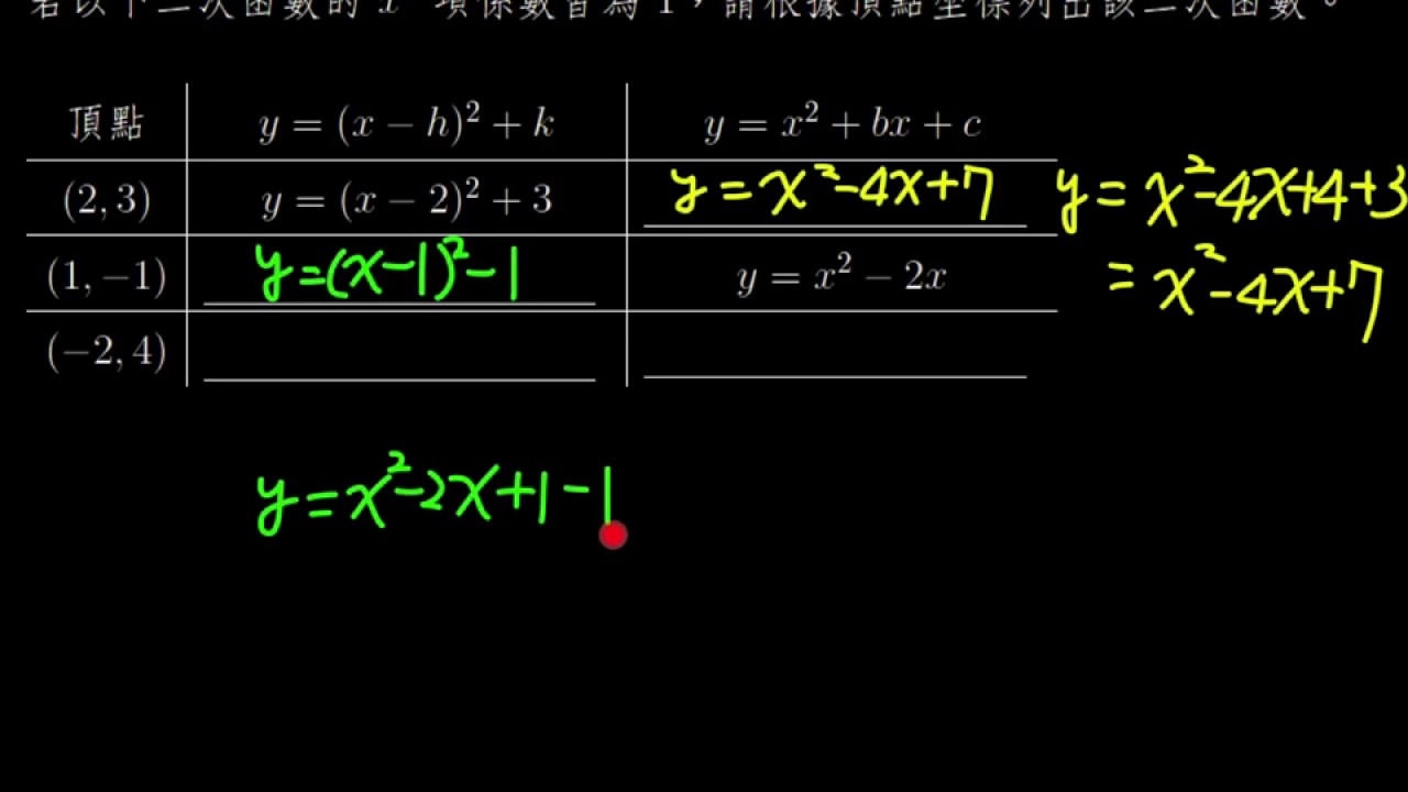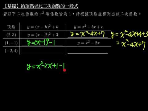 載入中... 相關課程 Back 【例題】給頂點求此二次函數的一般式 相關課程 0 / 750 登入觀看 ⇐ Use this menu to view and help create subtitles for this video in many different languages. You'll probably want to hide YouTube's captions if using these subtitles. 【例題】給頂點求此二次函數的一般式 上傳學習單 下載學習單