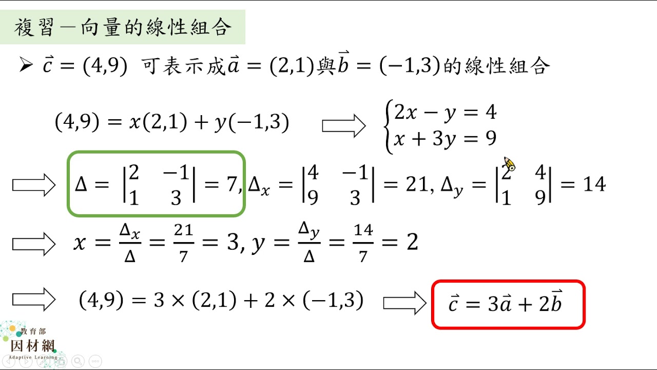 載入中... 相關課程 Back A-11A-1-S08_能從線性組合的觀點,理解克拉瑪公式的幾何意涵 相關課程 0 / 750 登入觀看 ⇐ Use this menu to view and help create subtitles for this video in many different languages. You'll probably want to hide YouTube's captions if using these subtitles. A-11A-1-S08_能從線性組合的觀點,理解克拉瑪公式的幾何意涵 上傳學習單 下載學習單