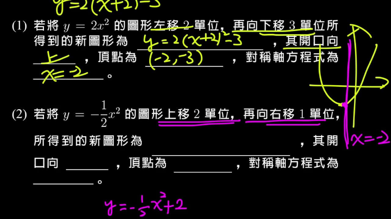 載入中... 相關課程 Back 【例題】二次函數的平移 相關課程 0 / 750 登入觀看 ⇐ Use this menu to view and help create subtitles for this video in many different languages. You'll probably want to hide YouTube's captions if using these subtitles. 【例題】二次函數的平移 上傳學習單 下載學習單