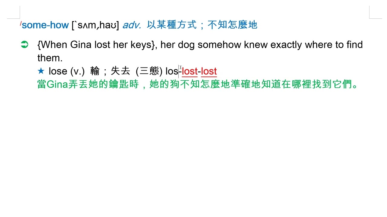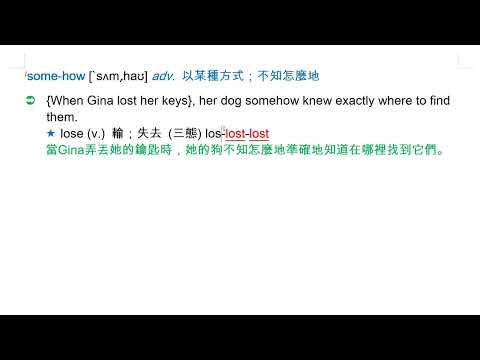 載入中... 相關課程 Back somehow [`sʌm͵haʊ] adv. 以某種方式;不知怎麼地 相關課程 0 / 750 登入觀看 ⇐ Use this menu to view and help create subtitles for this video in many different languages. You'll probably want to hide YouTube's captions if using these subtitles. somehow [`sʌm͵haʊ] adv. 以某種方式;不知怎麼地 上傳學習單 下載學習單