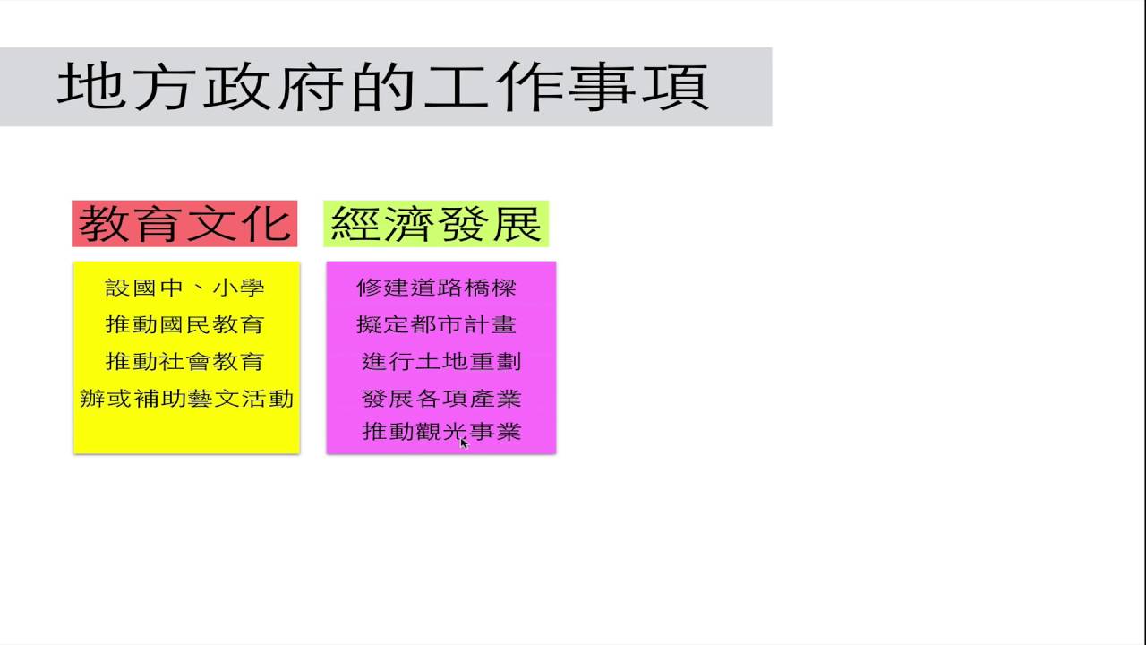 載入中... 相關課程 Back 【觀念】地方政府的工作事項 相關課程 0 / 750 登入觀看 ⇐ Use this menu to view and help create subtitles for this video in many different languages. You'll probably want to hide YouTube's captions if using these subtitles. 【觀念】地方政府的工作事項 上傳學習單 下載學習單