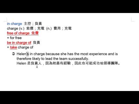 載入中... 相關課程 Back in charge 主控;負責 相關課程 0 / 750 登入觀看 ⇐ Use this menu to view and help create subtitles for this video in many different languages. You'll probably want to hide YouTube's captions if using these subtitles. in charge 主控;負責 上傳學習單 下載學習單
