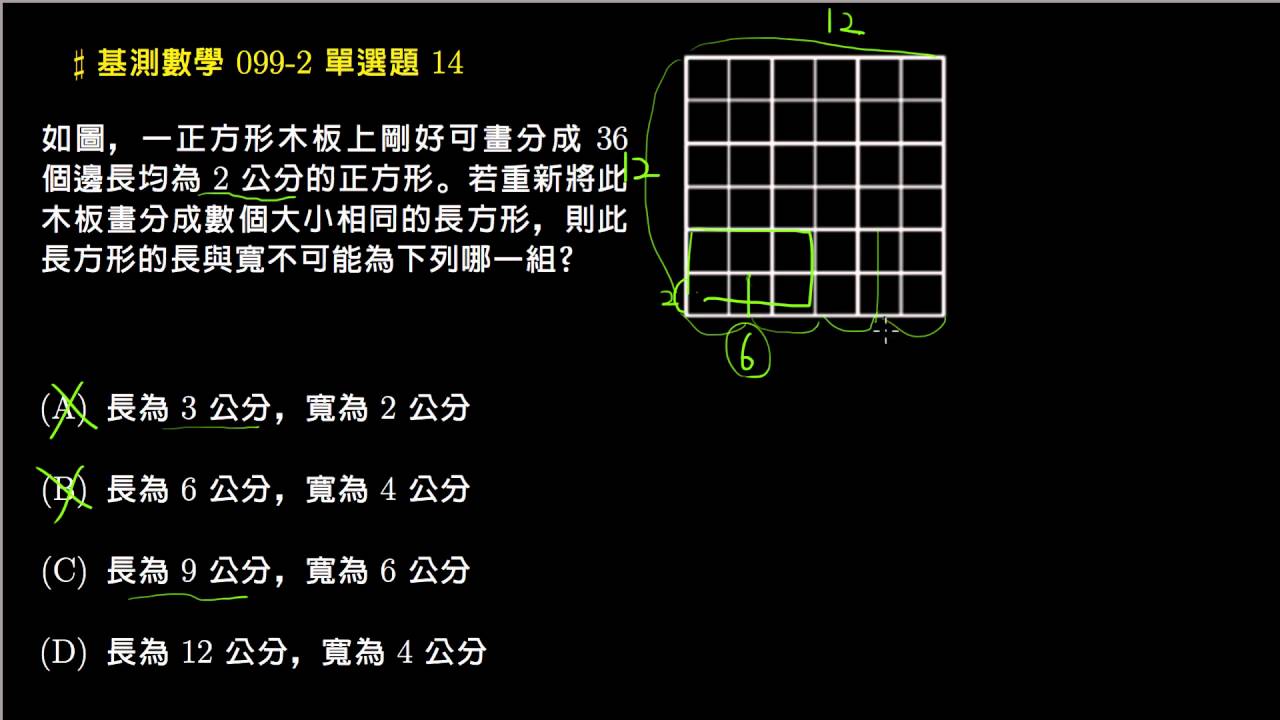 載入中... 相關課程 Back 【基測數學】99v2 單選14:正方形的重新切割 相關課程 0 / 750 登入觀看 ⇐ Use this menu to view and help create subtitles for this video in many different languages. You'll probably want to hide YouTube's captions if using these subtitles. 【基測數學】99v2 單選14:正方形的重新切割 上傳學習單 下載學習單