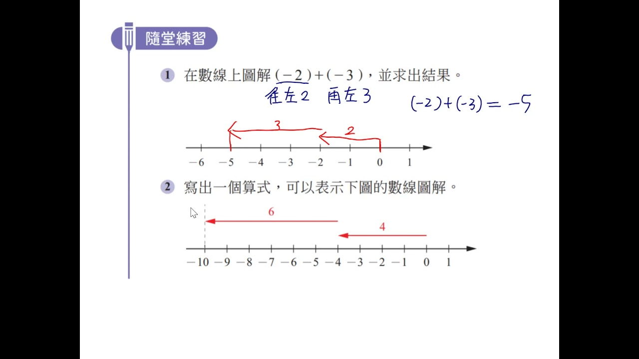 【暖身】在數線上做加法:負數加負數