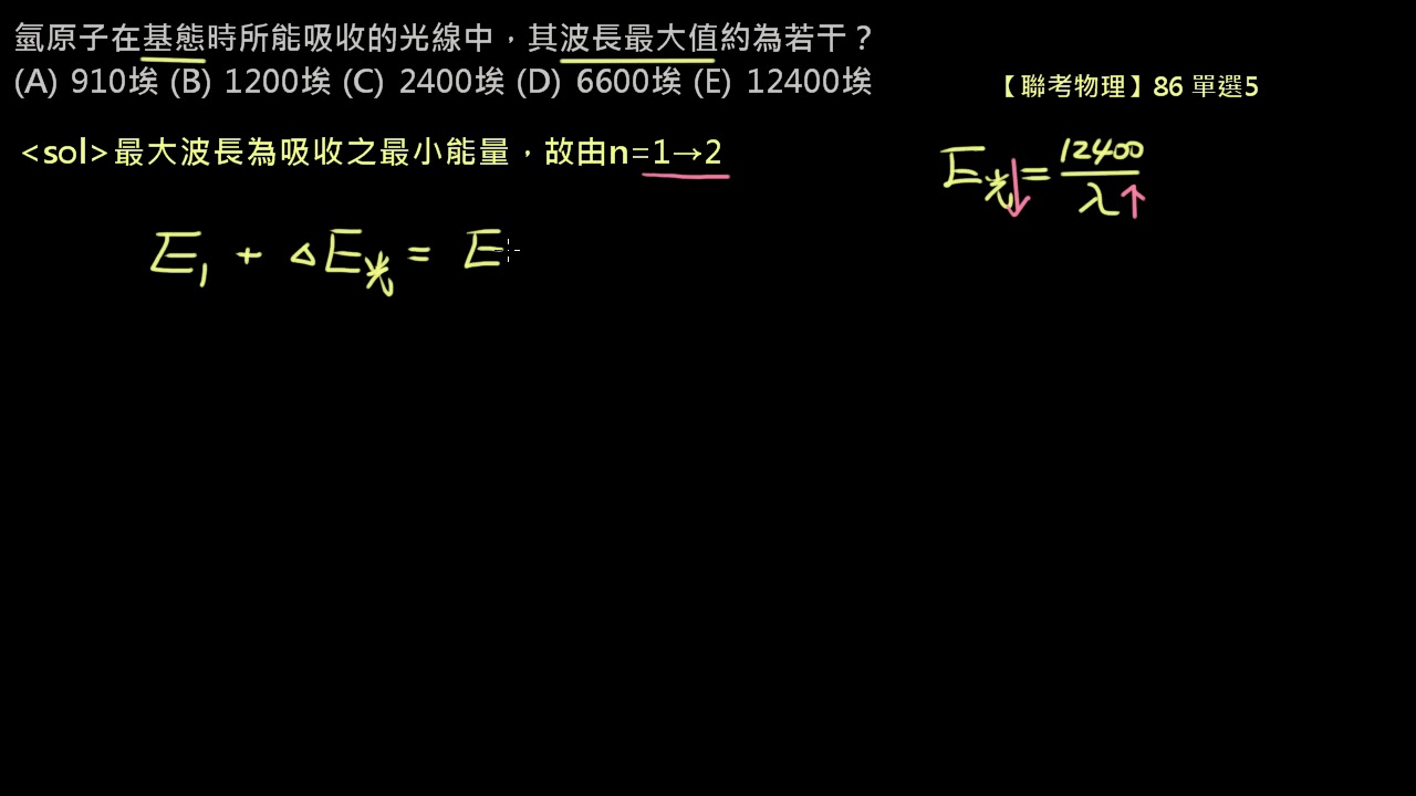 載入中... 相關課程 Back 【例題】【聯考物理】86 單選5:能階躍遷-最大吸收波長 相關課程 0 / 750 登入觀看 ⇐ Use this menu to view and help create subtitles for this video in many different languages. You'll probably want to hide YouTube's captions if using these subtitles. 【例題】【聯考物理】86 單選5:能階躍遷-最大吸收波長 上傳學習單 下載學習單