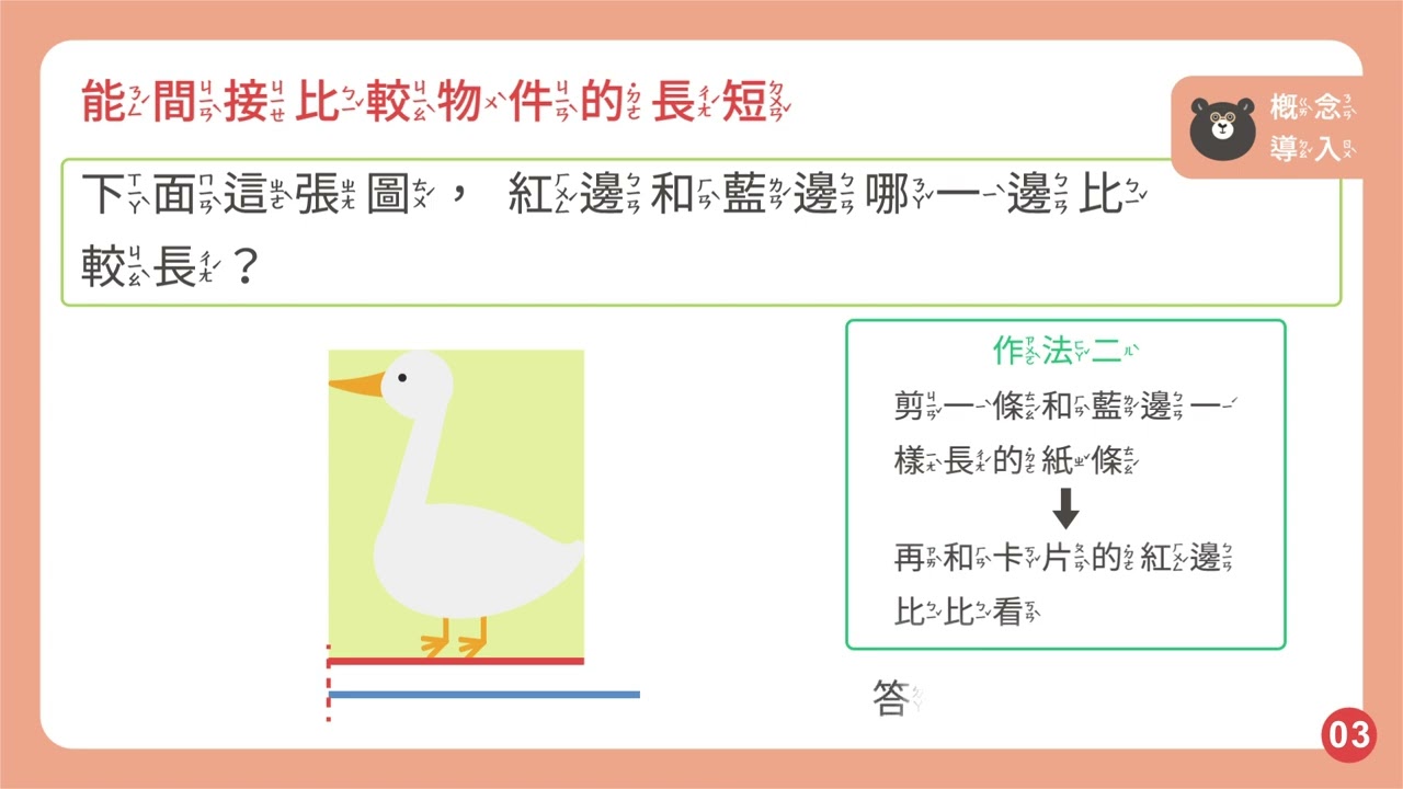 載入中... 相關課程 Back 【觀念】能間接比較物件的長短 相關課程 0 / 750 登入觀看 ⇐ Use this menu to view and help create subtitles for this video in many different languages. You'll probably want to hide YouTube's captions if using these subtitles. 【觀念】能間接比較物件的長短 上傳學習單 下載學習單
