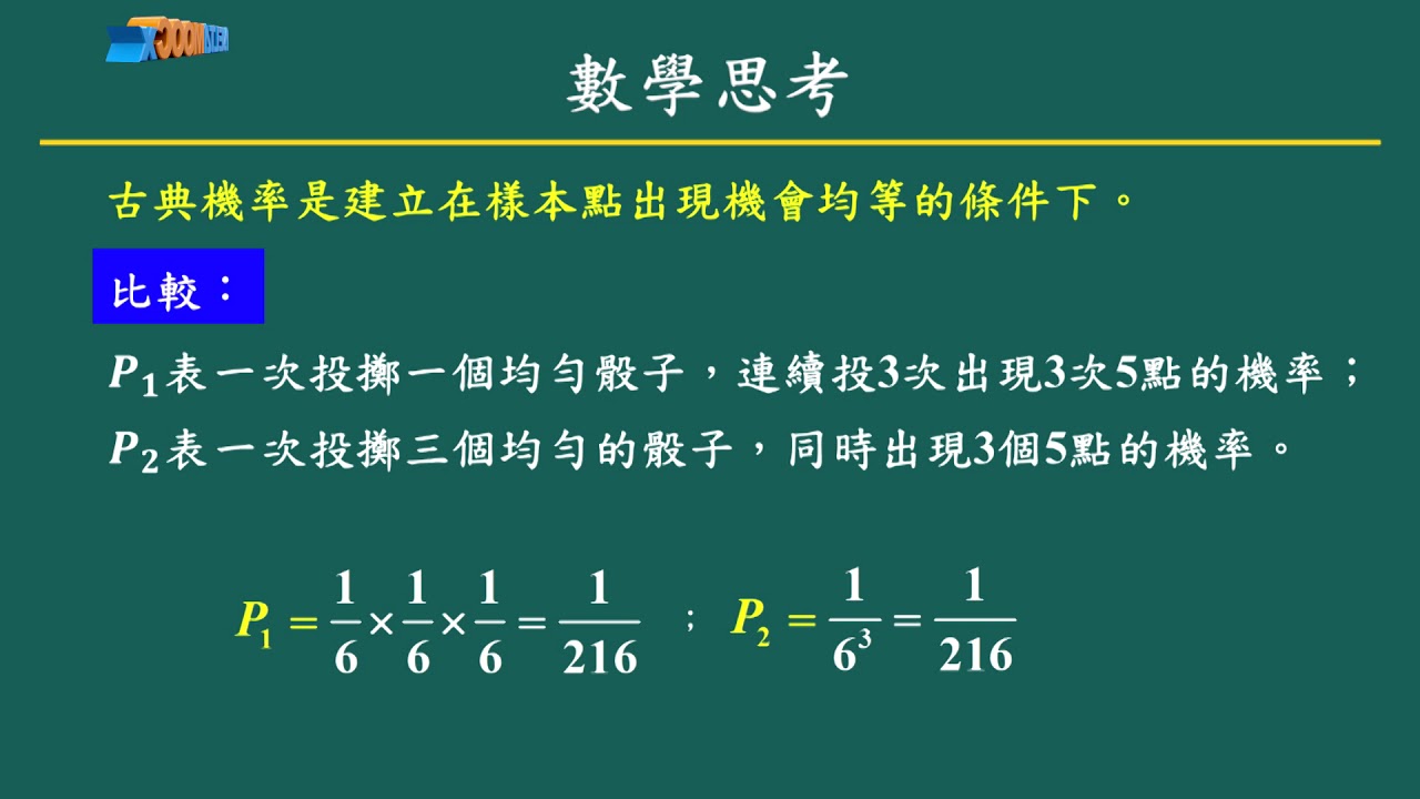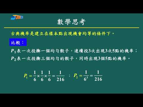 載入中... 相關課程 Back 5.古典機率 相關課程 0 / 750 登入觀看 ⇐ Use this menu to view and help create subtitles for this video in many different languages. You'll probably want to hide YouTube's captions if using these subtitles. 5.古典機率 : 進階:0~13:09 / 一般:0~13:09 / 基礎:0~13:09 上傳學習單 下載學習單