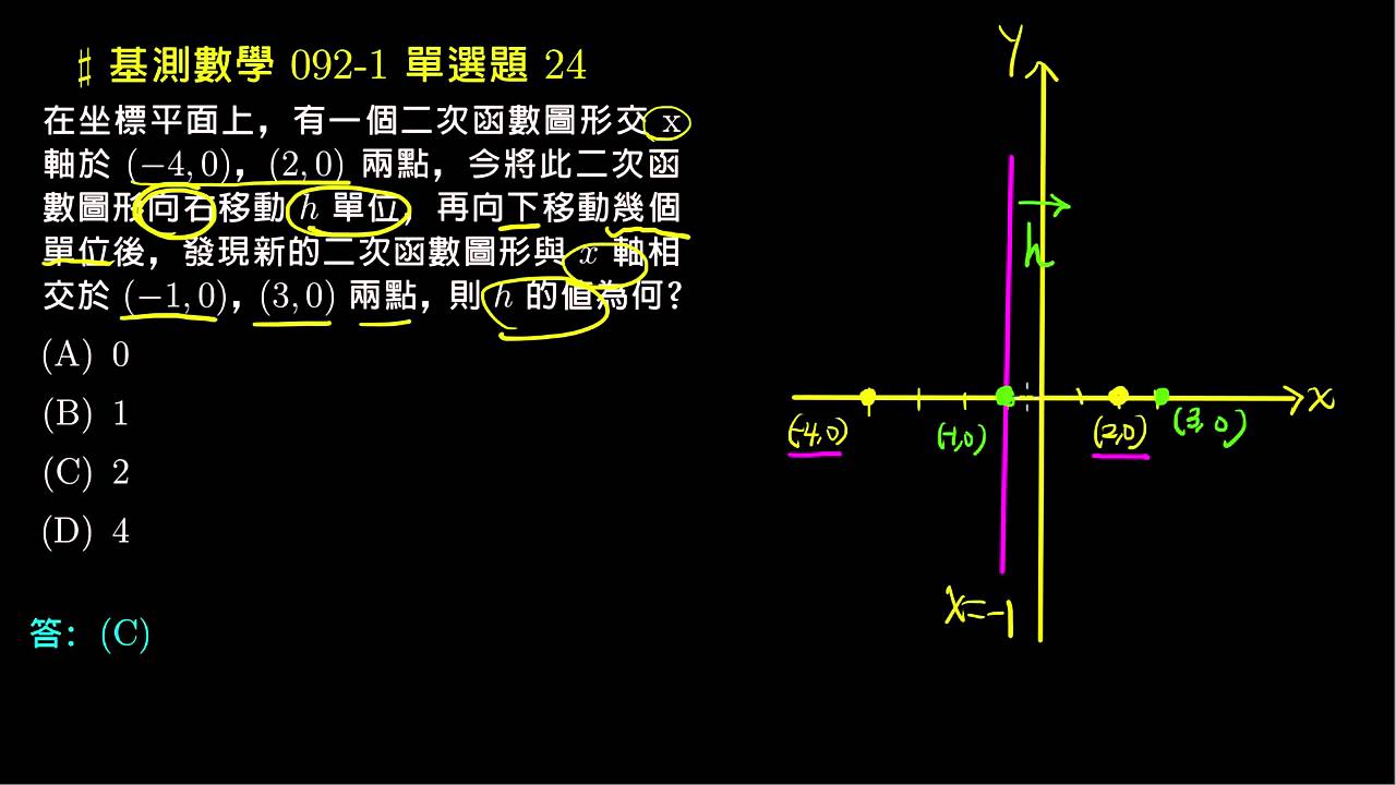 載入中... 相關課程 Back 【基測數學】92v1 單選24:二次函數的對稱性 相關課程 0 / 750 登入觀看 ⇐ Use this menu to view and help create subtitles for this video in many different languages. You'll probably want to hide YouTube's captions if using these subtitles. 【基測數學】92v1 單選24:二次函數的對稱性 上傳學習單 下載學習單