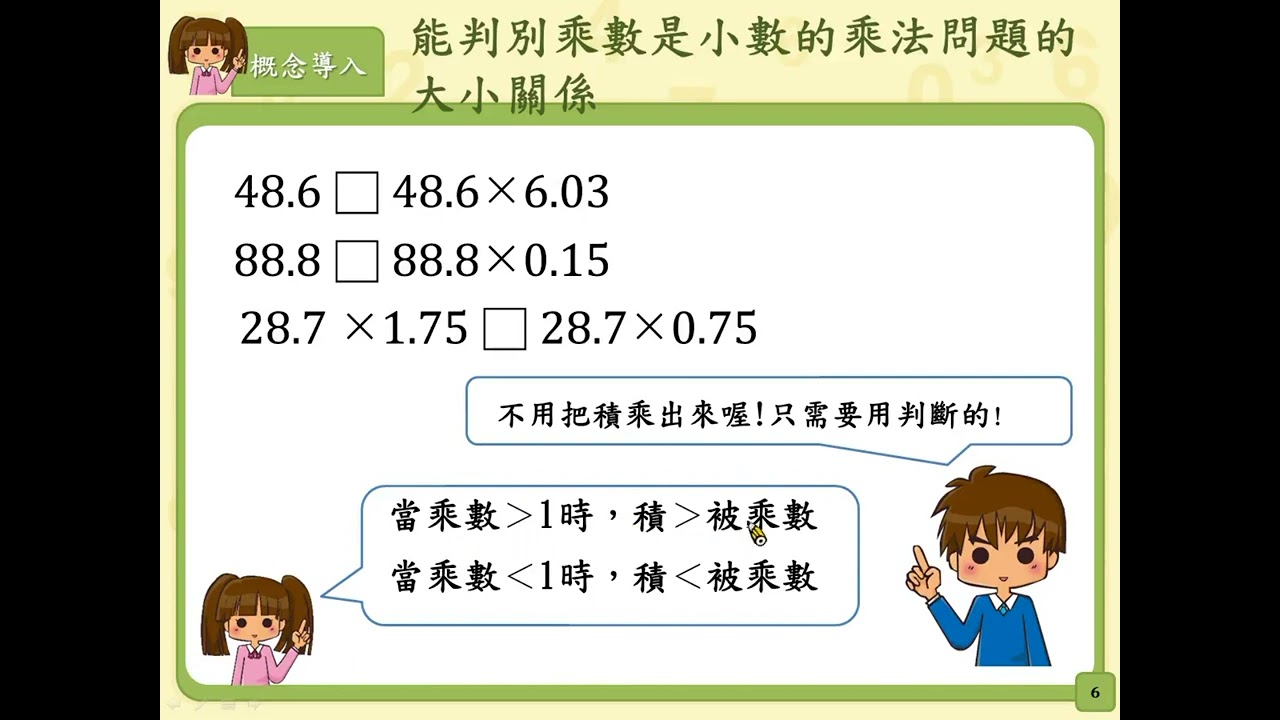 載入中... 相關課程 Back N-5-8-S03:能判別乘數是小數的乘法問題的大小關係。 相關課程 0 / 750 登入觀看 ⇐ Use this menu to view and help create subtitles for this video in many different languages. You'll probably want to hide YouTube's captions if using these subtitles. N-5-8-S03:能判別乘數是小數的乘法問題的大小關係。 上傳學習單 下載學習單