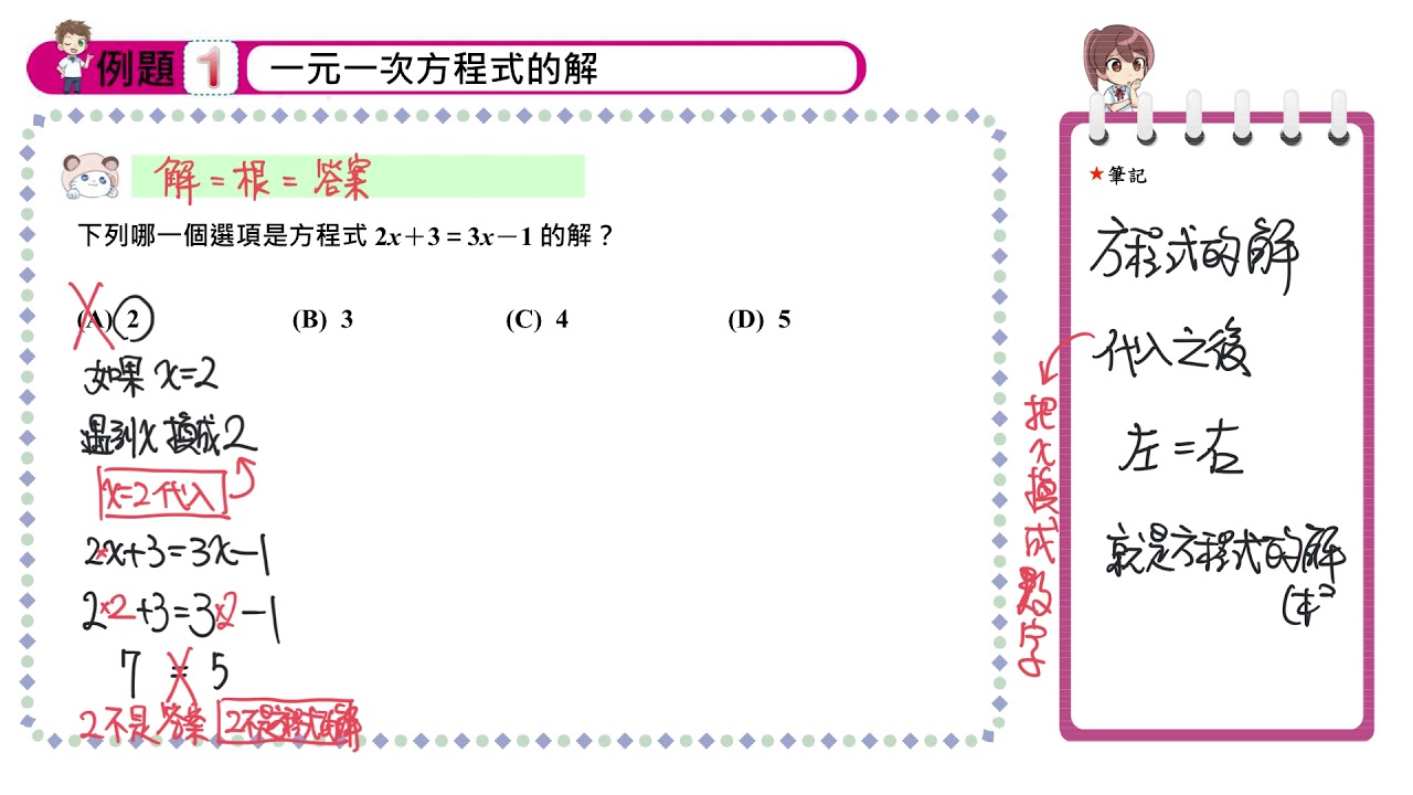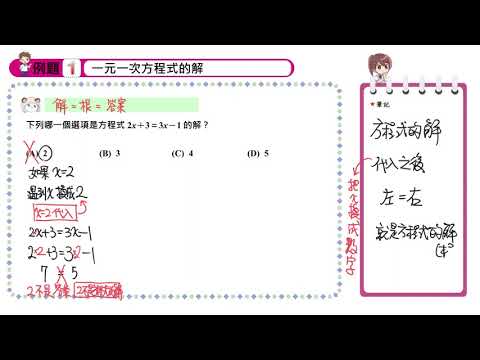 載入中... 相關課程 Back 【概念】一元一次方程式解的意義 相關課程 0 / 750 登入觀看 ⇐ Use this menu to view and help create subtitles for this video in many different languages. You'll probably want to hide YouTube's captions if using these subtitles. 【概念】一元一次方程式解的意義 上傳學習單 下載學習單
