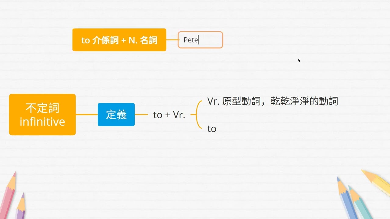 載入中... 相關課程 Back 1. 不定詞 infinitive 定義 相關課程 0 / 750 登入觀看 ⇐ Use this menu to view and help create subtitles for this video in many different languages. You'll probably want to hide YouTube's captions if using these subtitles. 1. 不定詞 infinitive 定義 上傳學習單 下載學習單