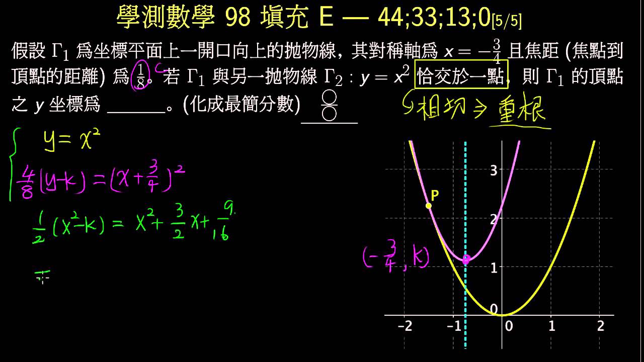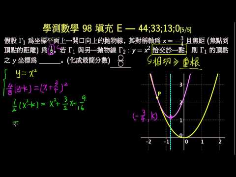 載入中... 相關課程 Back 【學測】098 填充E 兩拋物線恰交於一點 相關課程 0 / 750 登入觀看 ⇐ Use this menu to view and help create subtitles for this video in many different languages. You'll probably want to hide YouTube's captions if using these subtitles. 【學測】098 填充E 兩拋物線恰交於一點 上傳學習單 下載學習單
