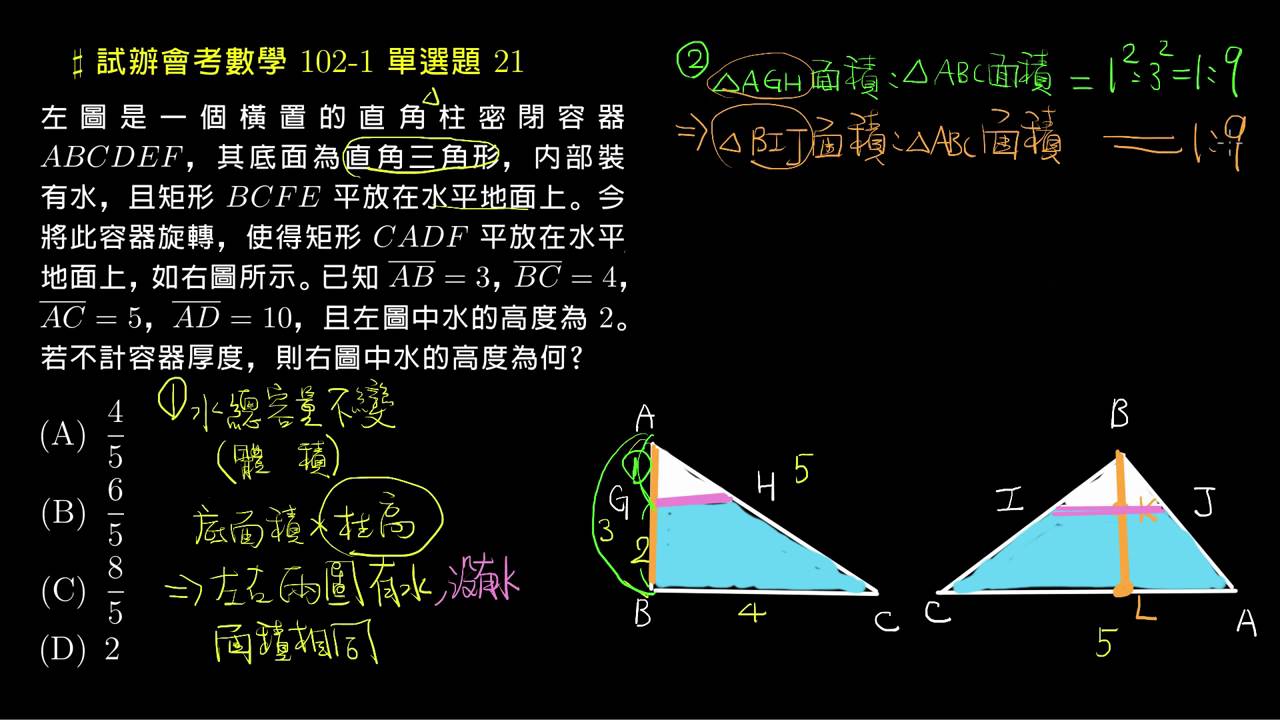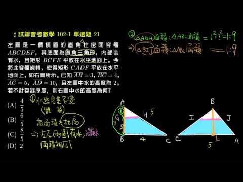 載入中... 相關課程 Back 【試辦會考數學】102 單選21:相似三角形面積比與柱體的體積 相關課程 0 / 750 登入觀看 ⇐ Use this menu to view and help create subtitles for this video in many different languages. You'll probably want to hide YouTube's captions if using these subtitles. 【試辦會考數學】102 單選21:相似三角形面積比與柱體的體積 上傳學習單 下載學習單