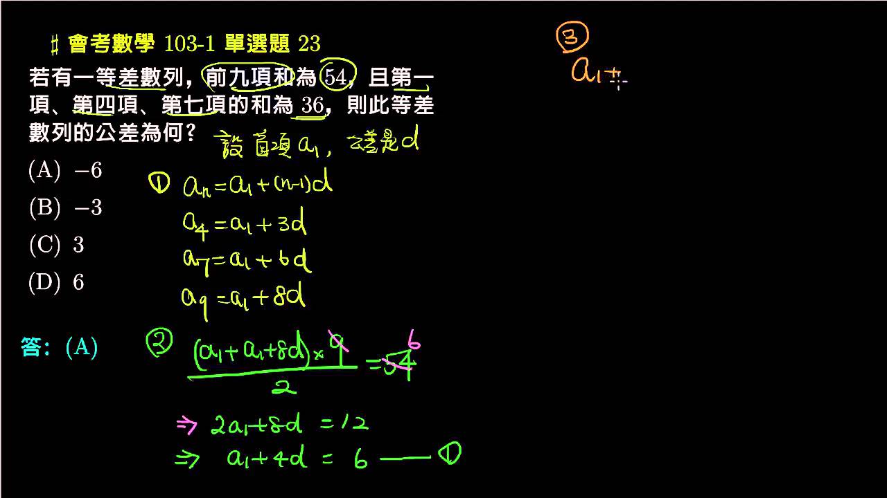 載入中... 相關課程 Back 【會考數學】103v1 單選23:等差級數 相關課程 0 / 750 登入觀看 ⇐ Use this menu to view and help create subtitles for this video in many different languages. You'll probably want to hide YouTube's captions if using these subtitles. 【會考數學】103v1 單選23:等差級數 上傳學習單 下載學習單
