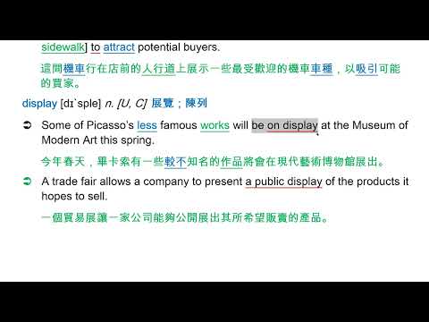載入中... 相關課程 Back display [dɪ`sple] vt. 展示;陳列 相關課程 0 / 750 登入觀看 ⇐ Use this menu to view and help create subtitles for this video in many different languages. You'll probably want to hide YouTube's captions if using these subtitles. display [dɪ`sple] vt. 展示;陳列 上傳學習單 下載學習單
