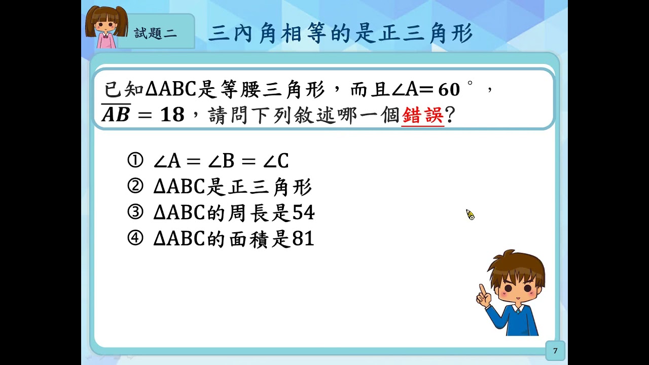 載入中... 相關課程 Back S-8-8-S08_能理解正三角形的三個內角都相等。若三角形的三內角相等則此三角形為正三角形。 相關課程 0 / 750 登入觀看 ⇐ Use this menu to view and help create subtitles for this video in many different languages. You'll probably want to hide YouTube's captions if using these subtitles. S-8-8-S08_能理解正三角形的三個內角都相等。若三角形的三內角相等則此三角形為正三角形。 上傳學習單 下載學習單