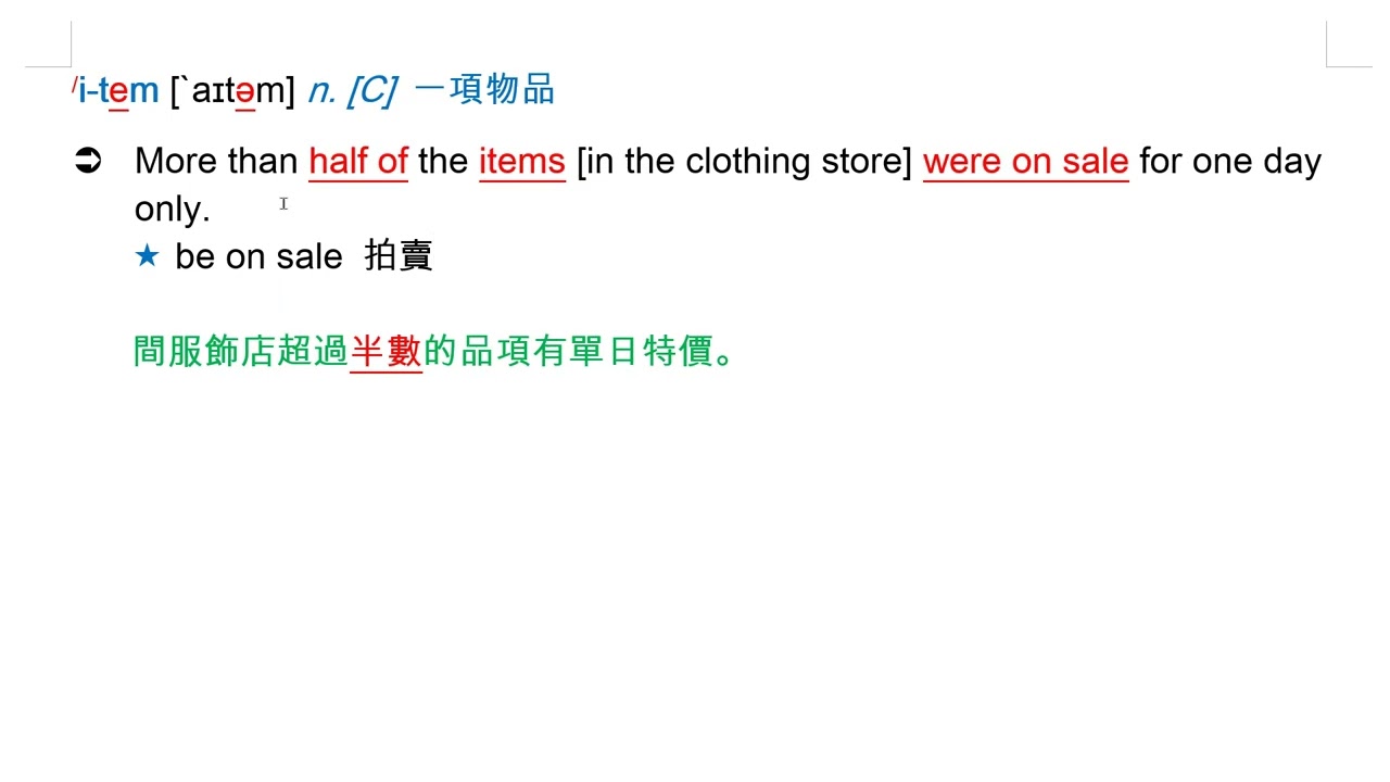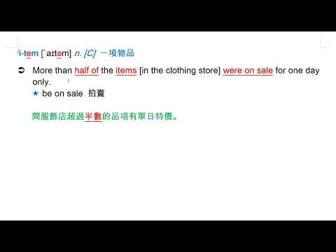 載入中... 相關課程 Back item [`aɪtəm] n. [C] 一項物品 相關課程 0 / 750 登入觀看 ⇐ Use this menu to view and help create subtitles for this video in many different languages. You'll probably want to hide YouTube's captions if using these subtitles. item [`aɪtəm] n. [C] 一項物品 上傳學習單 下載學習單
