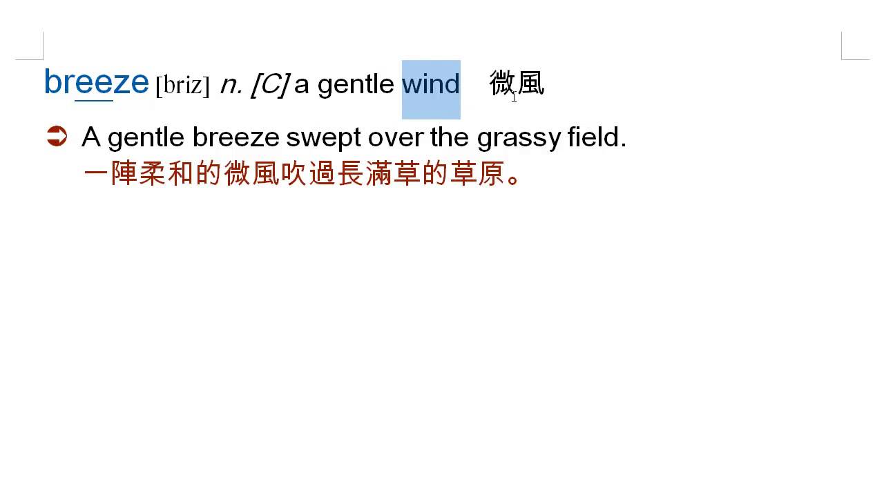 載入中... 相關課程 Back breeze: 微風, sweep, 橫掃, 掃地 相關課程 0 / 750 登入觀看 ⇐ Use this menu to view and help create subtitles for this video in many different languages. You'll probably want to hide YouTube's captions if using these subtitles. breeze: 微風, sweep, 橫掃, 掃地 上傳學習單 下載學習單