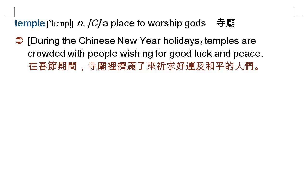 載入中... 相關課程 Back temple: 廟宇, be crowded with, 擠滿了 相關課程 0 / 750 登入觀看 ⇐ Use this menu to view and help create subtitles for this video in many different languages. You'll probably want to hide YouTube's captions if using these subtitles. temple: 廟宇, be crowded with, 擠滿了 上傳學習單 下載學習單