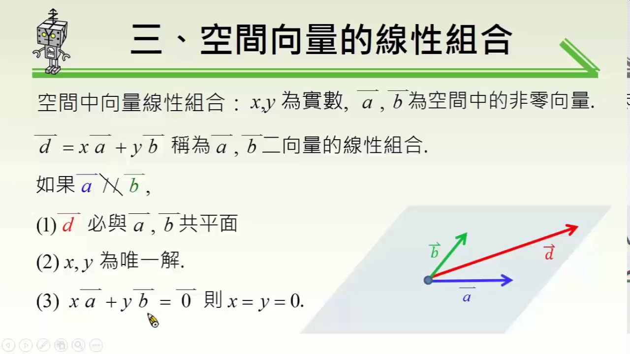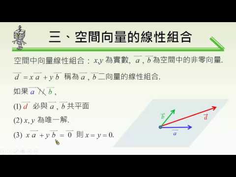 載入中... 相關課程 Back 【觀念】空間中向量的線性組合 相關課程 0 / 750 登入觀看 ⇐ Use this menu to view and help create subtitles for this video in many different languages. You'll probably want to hide YouTube's captions if using these subtitles. 【觀念】空間中向量的線性組合 上傳學習單 下載學習單