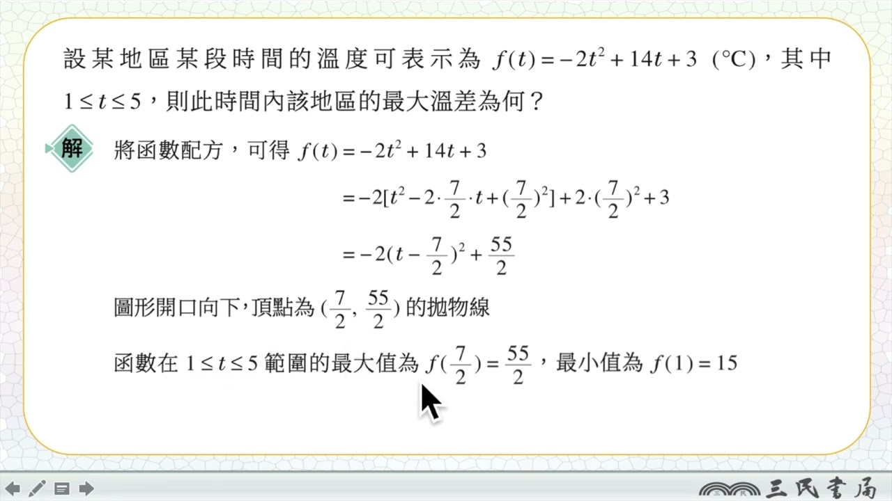 載入中... 相關課程 Back 【解題】限制範圍二次函數的極值 相關課程 0 / 750 登入觀看 ⇐ Use this menu to view and help create subtitles for this video in many different languages. You'll probably want to hide YouTube's captions if using these subtitles. 【解題】限制範圍二次函數的極值 上傳學習單 下載學習單