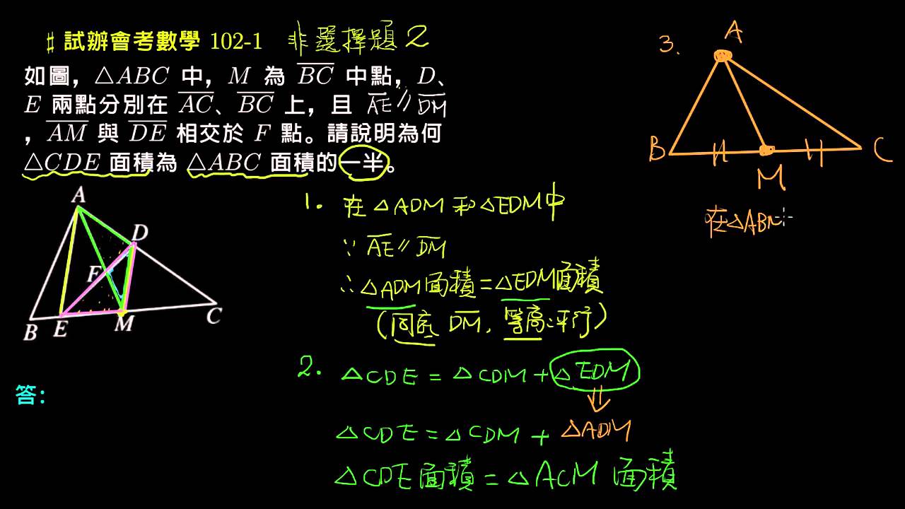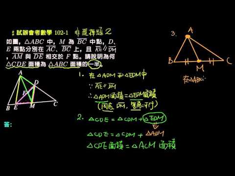 載入中... 相關課程 Back 【試辦會考數學】102 非選02:面積相等的三角形 相關課程 0 / 750 登入觀看 ⇐ Use this menu to view and help create subtitles for this video in many different languages. You'll probably want to hide YouTube's captions if using these subtitles. 【試辦會考數學】102 非選02:面積相等的三角形 上傳學習單 下載學習單