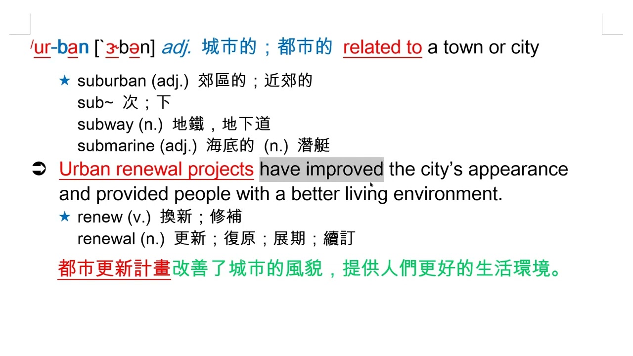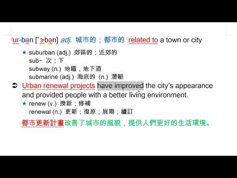 載入中... 相關課程 Back urban [`ɝbən] adj. 城市的;都市的 相關課程 0 / 750 登入觀看 ⇐ Use this menu to view and help create subtitles for this video in many different languages. You'll probably want to hide YouTube's captions if using these subtitles. urban [`ɝbən] adj. 城市的;都市的 上傳學習單 下載學習單