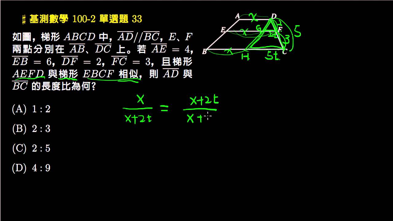 載入中... 相關課程 Back 【基測數學】100v2 單選33:相似梯形 相關課程 0 / 750 登入觀看 ⇐ Use this menu to view and help create subtitles for this video in many different languages. You'll probably want to hide YouTube's captions if using these subtitles. 【基測數學】100v2 單選33:相似梯形 上傳學習單 下載學習單
