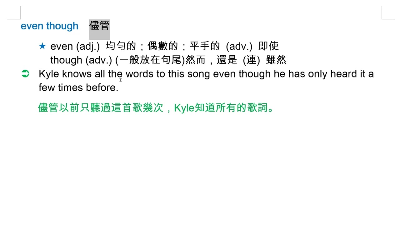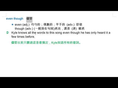 載入中... 相關課程 Back even though 儘管 相關課程 0 / 750 登入觀看 ⇐ Use this menu to view and help create subtitles for this video in many different languages. You'll probably want to hide YouTube's captions if using these subtitles. even though 儘管 上傳學習單 下載學習單