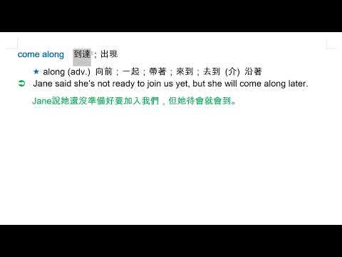 載入中... 相關課程 Back come along 到達;出現 相關課程 0 / 750 登入觀看 ⇐ Use this menu to view and help create subtitles for this video in many different languages. You'll probably want to hide YouTube's captions if using these subtitles. come along 到達;出現 上傳學習單 下載學習單