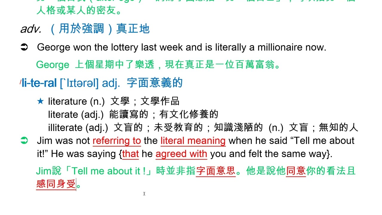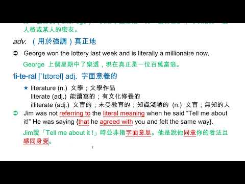 載入中... 相關課程 Back literally [`lɪtərəlɪ] adv. 字面上 相關課程 0 / 750 登入觀看 ⇐ Use this menu to view and help create subtitles for this video in many different languages. You'll probably want to hide YouTube's captions if using these subtitles. literally [`lɪtərəlɪ] adv. 字面上 上傳學習單 下載學習單