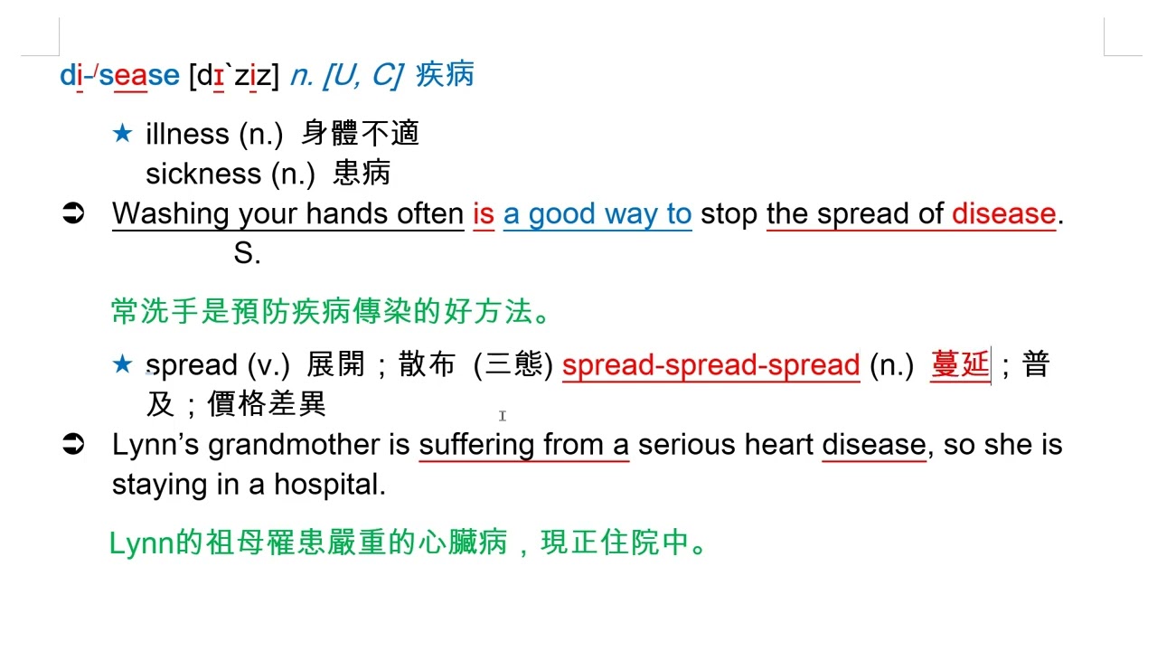載入中... 相關課程 Back disease [dɪ`ziz] n. [U, C] 疾病 相關課程 0 / 750 登入觀看 ⇐ Use this menu to view and help create subtitles for this video in many different languages. You'll probably want to hide YouTube's captions if using these subtitles. disease [dɪ`ziz] n. [U, C] 疾病 上傳學習單 下載學習單