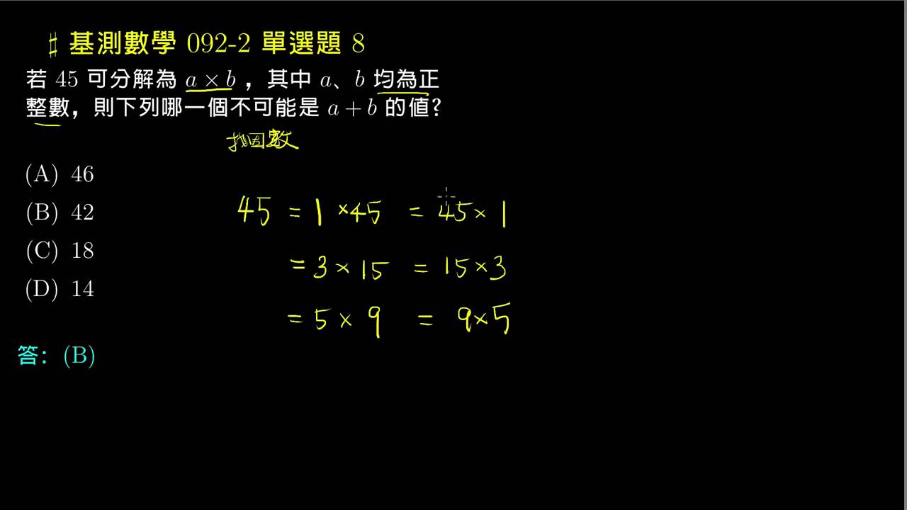 載入中... 相關課程 Back 【基測數學】92v2 單選08:找出正因數 相關課程 0 / 750 登入觀看 ⇐ Use this menu to view and help create subtitles for this video in many different languages. You'll probably want to hide YouTube's captions if using these subtitles. 【基測數學】92v2 單選08:找出正因數 上傳學習單 下載學習單
