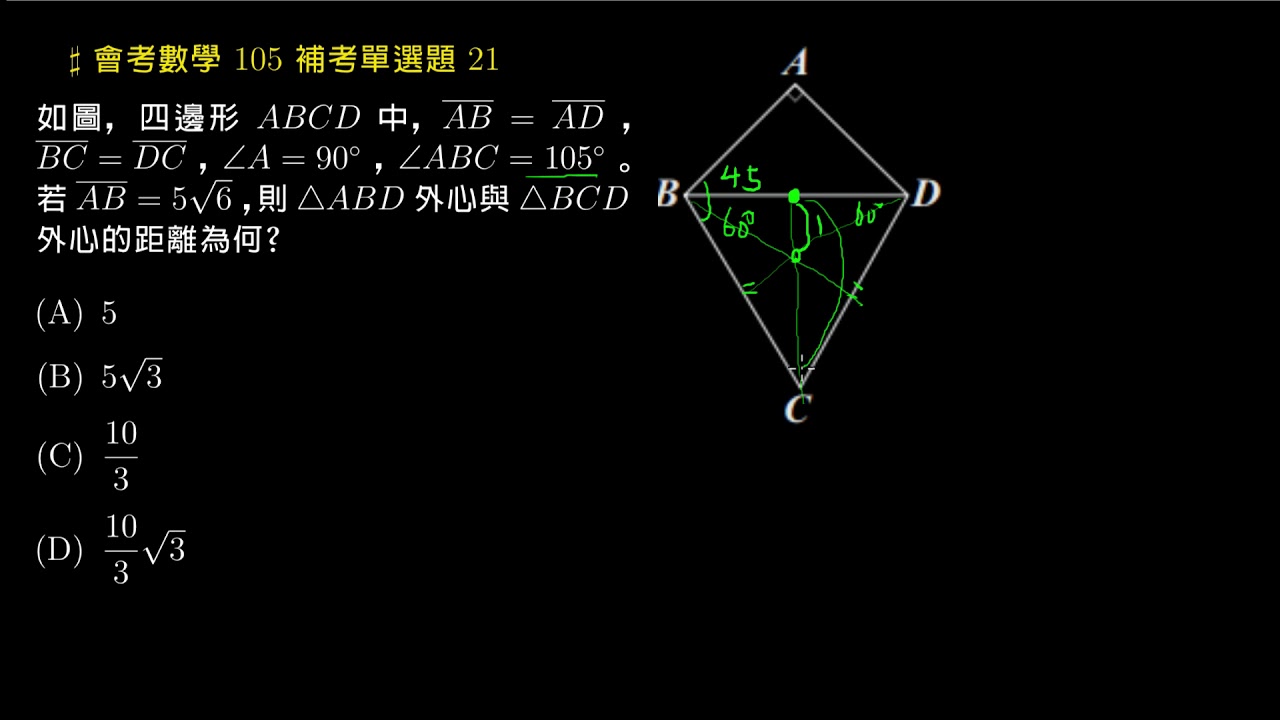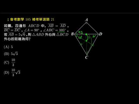 載入中... 相關課程 Back 【會考數學】105補考 單選21:三角形的外心 相關課程 0 / 750 登入觀看 ⇐ Use this menu to view and help create subtitles for this video in many different languages. You'll probably want to hide YouTube's captions if using these subtitles. 【會考數學】105補考 單選21:三角形的外心 : 【勘誤】此題答案應為 (A)5 上傳學習單 下載學習單
