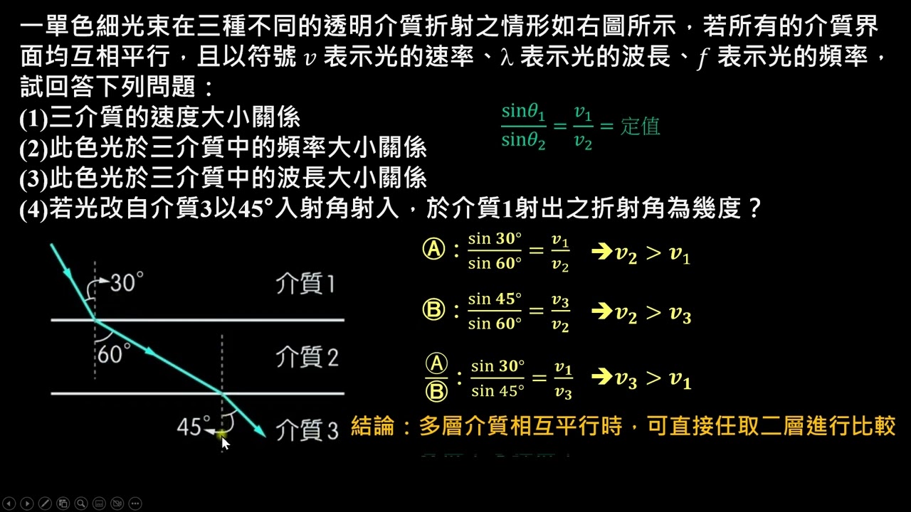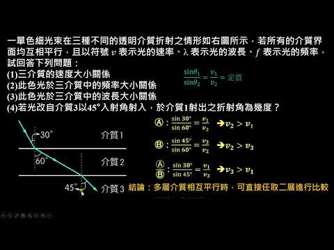 載入中... 相關課程 Back 【例題】多層平行介質的波動比較 相關課程 0 / 750 登入觀看 ⇐ Use this menu to view and help create subtitles for this video in many different languages. You'll probably want to hide YouTube's captions if using these subtitles. 【例題】多層平行介質的波動比較 上傳學習單 下載學習單