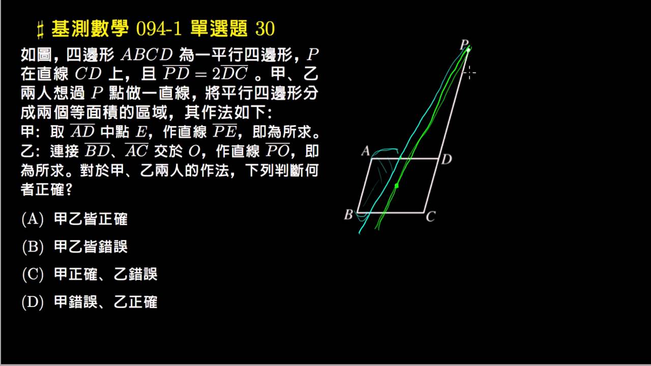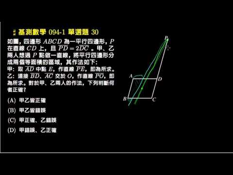 載入中... 相關課程 Back 【基測數學】94v1 單選30:等分平行四邊形 相關課程 0 / 750 登入觀看 ⇐ Use this menu to view and help create subtitles for this video in many different languages. You'll probably want to hide YouTube's captions if using these subtitles. 【基測數學】94v1 單選30:等分平行四邊形 上傳學習單 下載學習單