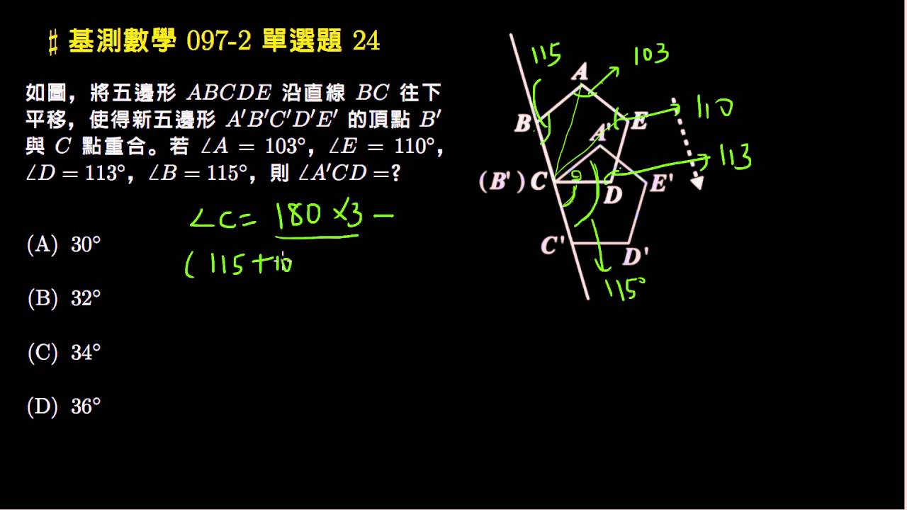 載入中... 相關課程 Back 【基測數學】97v2 單選24:五邊形的平移 相關課程 0 / 750 登入觀看 ⇐ Use this menu to view and help create subtitles for this video in many different languages. You'll probably want to hide YouTube's captions if using these subtitles. 【基測數學】97v2 單選24:五邊形的平移 上傳學習單 下載學習單